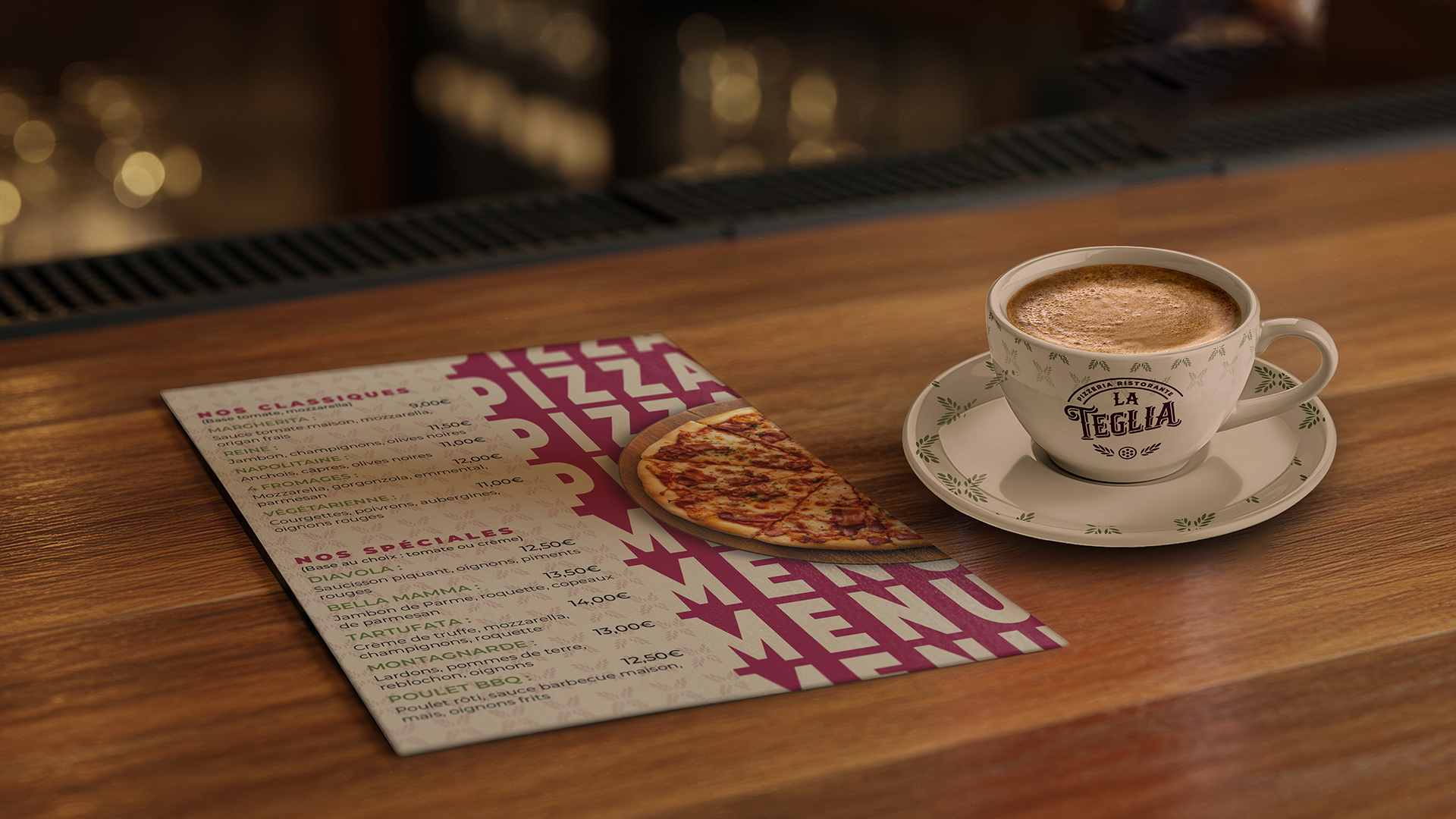 Conception d’un logo illustratif et typographique pour La Teglia, pizzeria située dans le Vieux Lyon.